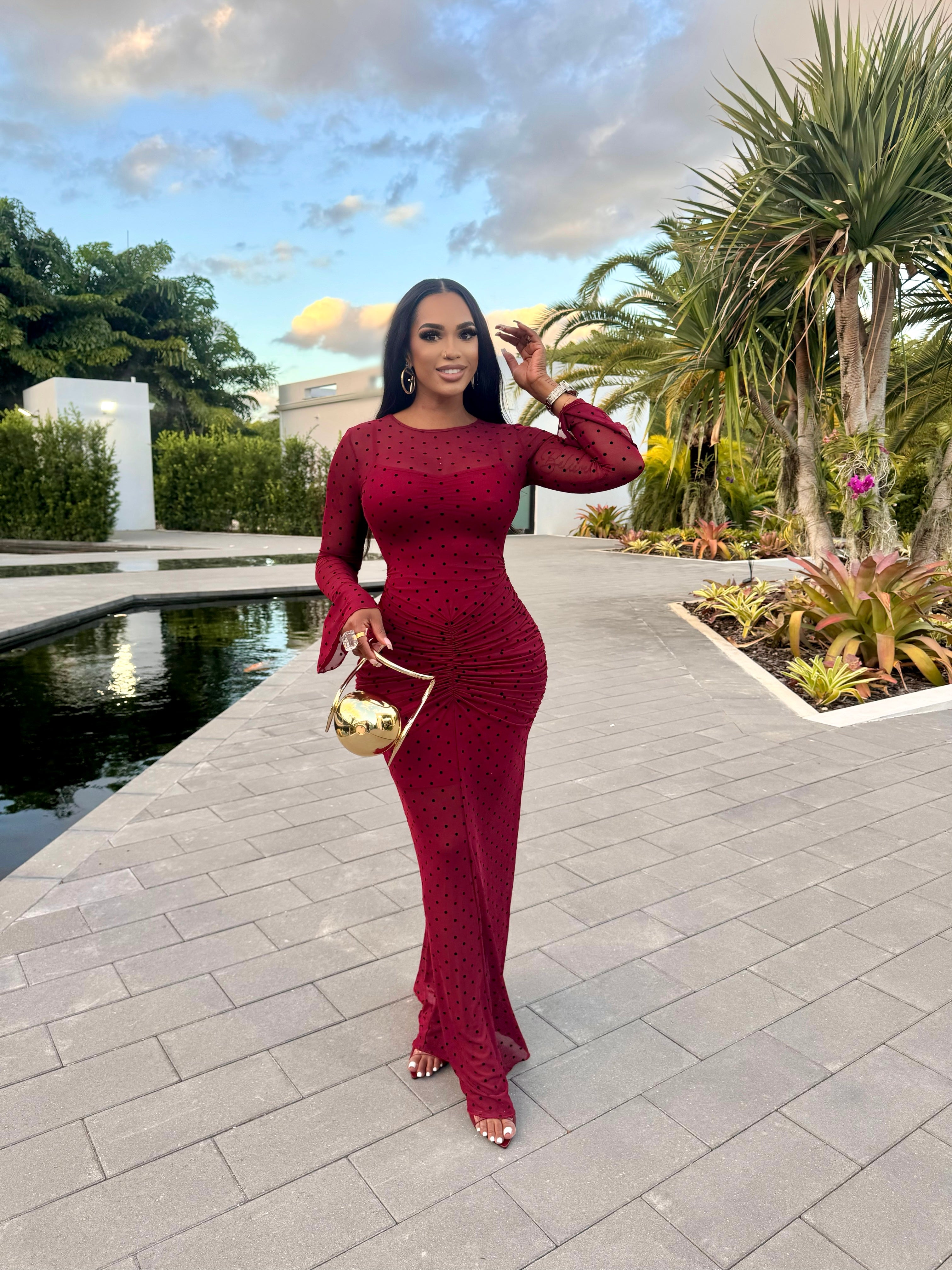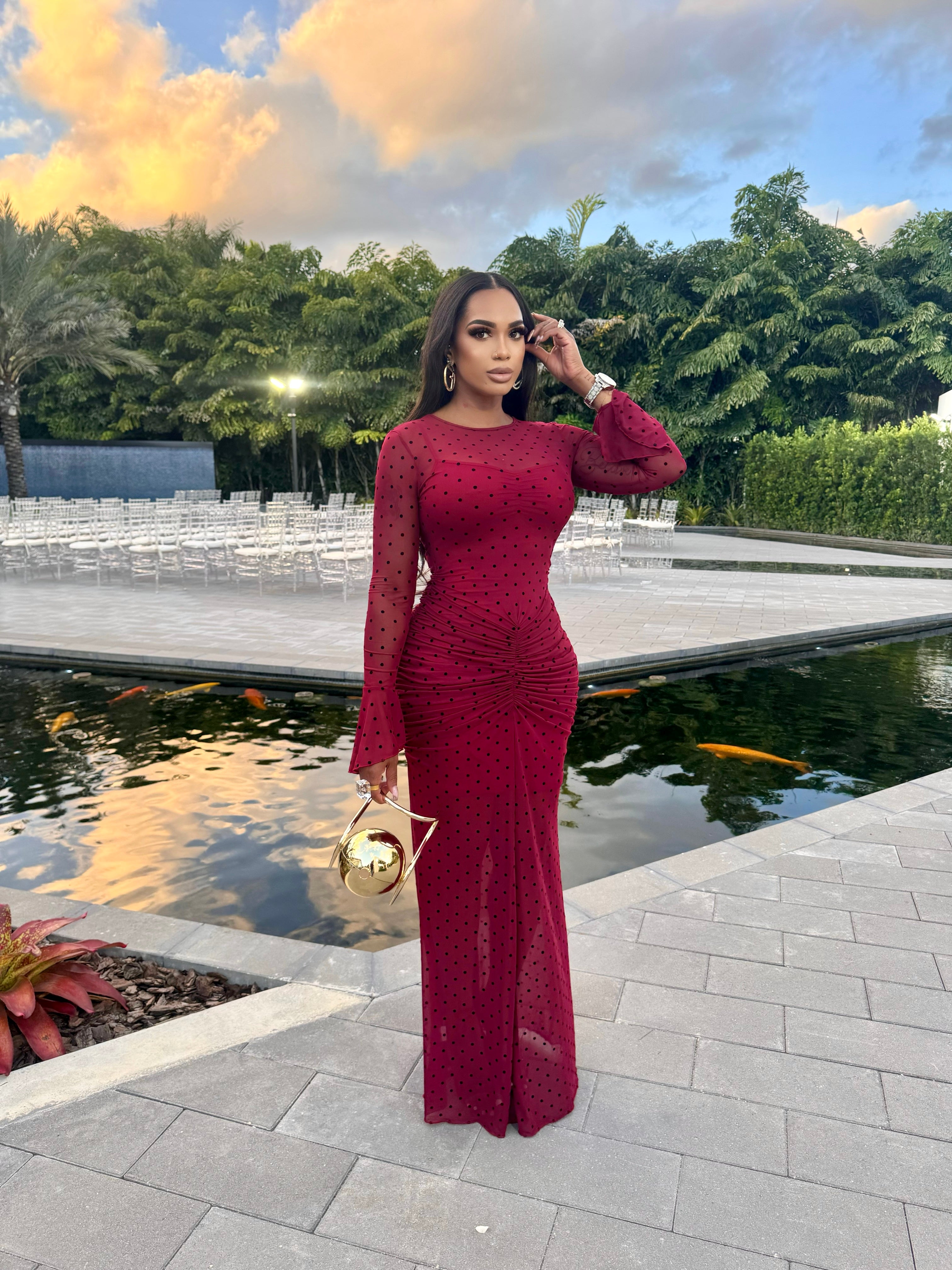 Effortlessly elegant, Love Story boasts a sheer burgundy polka dot fabric and a removable underpiece. Perfect for any occasion, this versatile piece offers a touch of sophistication and style to your wardrobe. With its delicate design and quality construction, Love Story is a must-have for any fashion-forward individual.